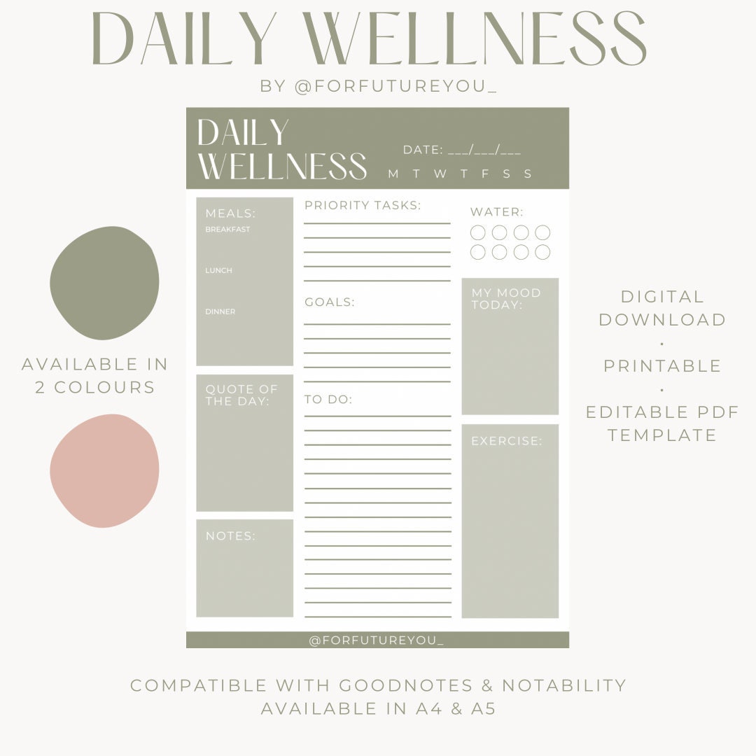 Digital Daily Wellness Journal Printable Downloadable Etsy Australia